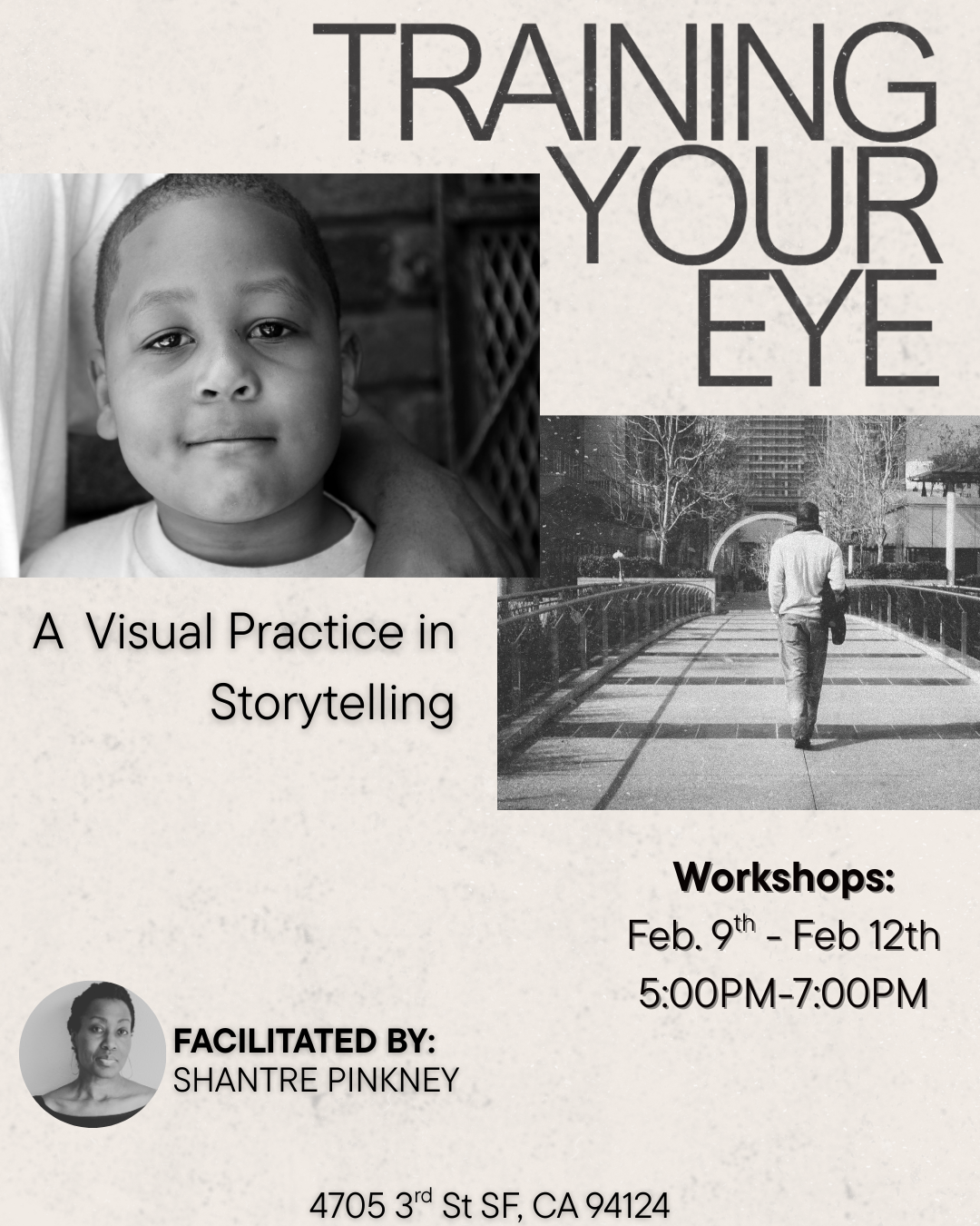 From Feb. 9-12, I’ll be facilitating the workshop Training Your Eye: A Visual Practice in Storytelling, which guides participants in creating personal and collective stories through photography, film, and writing. We explore how light, color, memory, and personal experience shape the stories we tell. February 9-12 from 5pm-7pm (4705 3rd St., SF, CA 94124) in partnership with the Bayview Opera House (Ruth Williams Opera House). Free. All levels are welcome. Registration is open now.